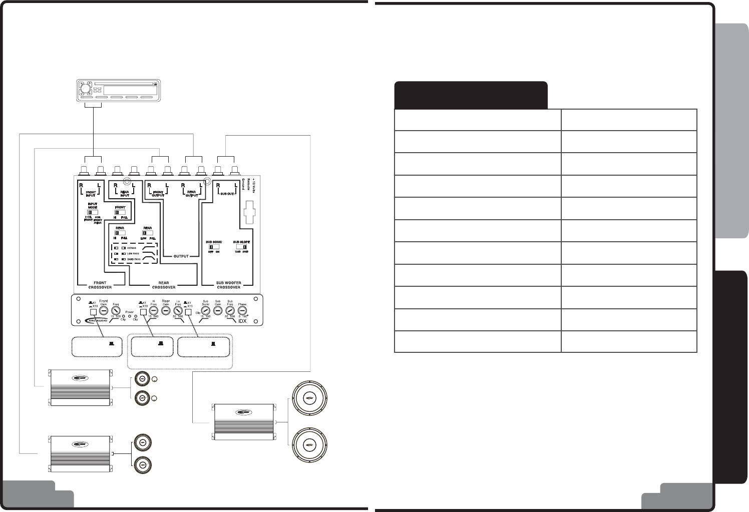 Rear Low Pass Crossover (12dB/Octave) 50Hz-500Hz ( X10=500Hz-5KHz)
