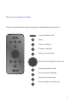 rDock-uni remote control Please remove the plastic tab to connect the supplied batteries before use. Turn the dock on/off. Mute. Increase volume. OK Decrease volume. OK Selects current track. Select music by playlist, artist etc. Jump to previous track. Start or pause playback. Jump to the next track. Play selection continuously.