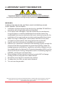 Trouble-Shooting Guide Problem Possible Reason Solution Ensure the plug is connected Hood doesn’t turn on Poor airflow No electrical supply Ensure the main switch is turned on Power cord is damaged Call ARDA service Aluminum grease filters clogged Clean the filters and replace when dry Charcoal filters clogged (recirculating mode only) Replace the charcoal filters Hood is not secured in place Check the installation of hood Tighten mounting screws Motor running but no airflow, or air comes bac