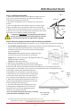 Wall Mounted Hoods Fig. 3 Step C. Installing the Ductwork 1. Arda hoods exhaust vertically up through the ceiling to the roof (Fig. 3). They can be ducted to the rear behind the decorative Roof Cap chimney duct through an outside wall. 2. Plan where the ductwork will run between the hood and the outside. 3. A short straight duct run will produce the most air flow. Longer lengths and elbow ducts will reduce the efficiency of the blower. Wall Cap 4. Install a roof or wall cap outside your home.