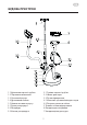 UA БУДОВА ПРИСТРОЮ 1.1 Кріплення парової трубки 1.2 Перемикач живлення 1.3 Основний корпус 1.4 Дренажний клапан 1.5 Нижня частина корпусу 2.1 Ручка резервуара 2.2 Резервуар и не завершите встановлення. 2.3 Кнопка резервуара ОРИСТАННЯМ) 3.1 Голівка парової трубки 3.2 Шланг для пари 3.3 Ручка відпарювача 4.1 Комплект кронштейнів для опори 4.2 Регулятор висоти стійки 5 Тримач голівки відпарювача 6 Насадка для плісування 7 Насадка-щітка для хутра риладу, див. мал.1. повідний отвір на корпусі приладу, див.
