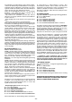 USE AND MAINTENANCE • It is recommended to operate the appliance prior to cooking. It is recommended to leave the appliance in operation for 15 minutes after cooking is terminated in order to completely eliminate cooking vapours and odours. The proper function of the cooker hood is conditioned by the regularity of the maintenance operations, in particular, the active carbon filter.