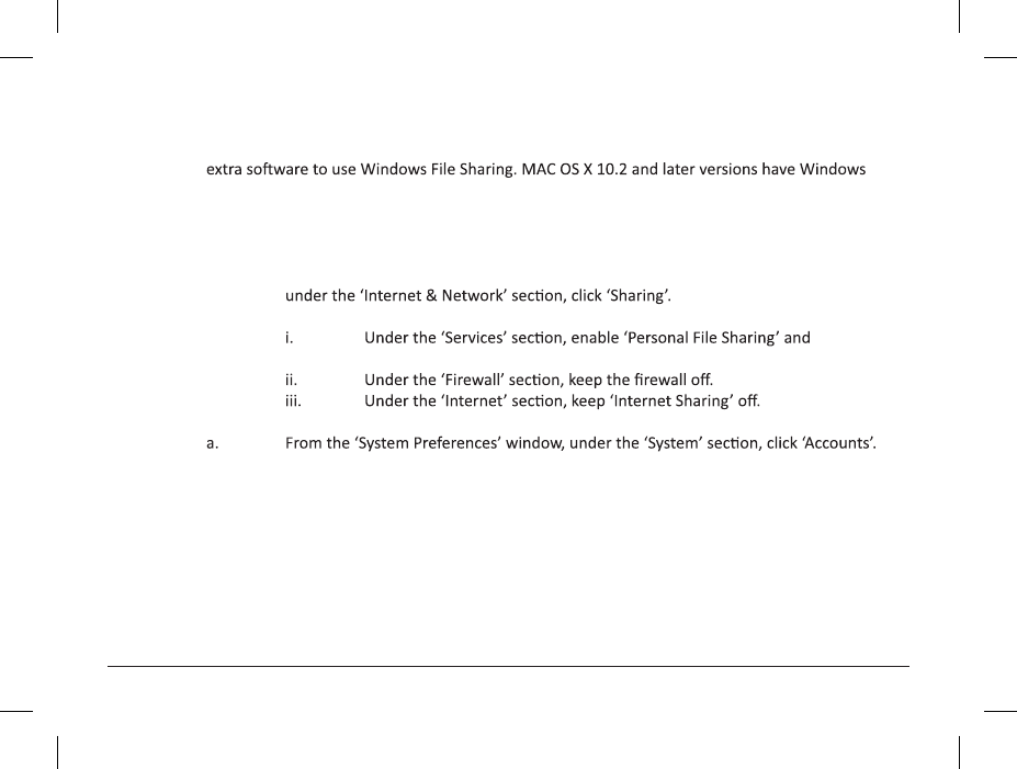 1. The MAC will require Windows File Sharing. MAC OS 9 and earlier versions of the OS will need