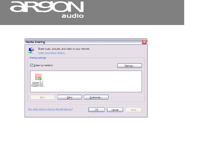 also set a name for the shared media in Settings… Click OK to close the dialogue boxes.