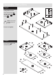 Assembly Instructions Step 5 Fixing drawer runners. E E Fit drawer runners 24 to the right side panel 9 and middle right panel 11 then fix them using screws E as shown. E 24 24 24 9 E E 24 24 11 Step 6 Fixing shelf. With help, fit middle right panel 11 and middle left panel 12 to the shelf 13 then fix it using screws D . D Make sure round edge on shelf 13 must face down.