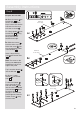 Assembly Instructions Step 9 J Prepare the right side M a: Place 3 runners M on the right side 2 as shown. Slide back the top of runner and use the 2nd hole from the front to fit the 1st screw J . b: Slide the runner M back the other way and fit the 2nd screw J into the corresponding hole in the right side 2 . J J 2 a: J M M M Finished front edge c: Screw 5 metal dowels A into the right side 2 . J Insert 2 large locking nuts B into the right side 2 .