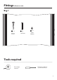 Fittings (Shown to scale) Bag 1 A x2 B x2 C x2 25mm Screw 6x25mm 9mm Washer Tools required Ruler/tape measure Phillips screwdriver (small & medium) 2