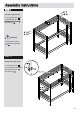 Assembly Instructions Step 9 F +D F +D Fixing long guard rail: Fix long guard rails 9 to the headboard and footboard using bolts F and allen key D . 9 9 D+F D+F Attention: Finish tighten screws on side rails using allen key D . Step 10 Fixing short guard rail: Fix short guard rail 10 to the footboard and ladder side rail using bolts F and allen key D .