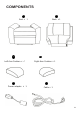 COMPONENTS A B Back ×1 Seat × 1 C Left Arm Cushion × 1 E Power adapter × 1 D Right Arm Cushion × 1 F Cable × 1 2