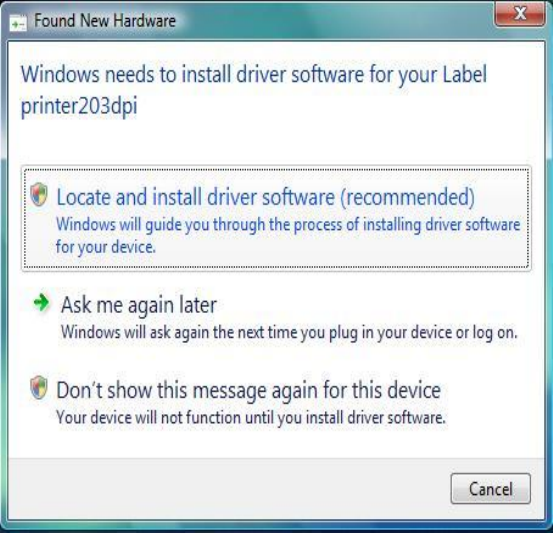Installing the USB Driver in Windows Vista (Plug and Play)