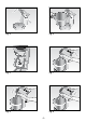- PT F G H I L M N Corpo do motor Botão de desengate das pás Botão de ligar / desligar Visor Selector de velocidade Pega Suporte MONTAGEM E DESMONTAGEM DAS PÁS - Esta batedeira dispõe de dois tipos de pás: - pás batedoras (D) de metal para bater maionese, molhos, natas e claras em castelo; - pás misturadoras (E) para amassar. - Para montar as pás, segure a batedeira pela pega (M) e encaixe o pé de cada pá nos respectivos furos, rodando ligeiramente até ao clique de encaixe.