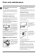 Care and maintenance GB Cutting off the water and electricity supplies Caring for the door and drum of your appliance • Turn off the water tap after every wash cycle. This will limit wear on the hydraulic system inside the washer-dryer and help to prevent leaks. • Always leave the porthole door ajar in order to prevent unpleasant odours from forming. • Unplug the washer-dryer when cleaning it and during all maintenance work.