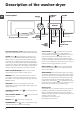 Description of the washer-dryer GB Control panel CLEANING ACTION ON/OFF button button DRYING button DISPLAY Detergent dispenser drawer WASH CYCLE SELECTOR MEMORY button START/PAUSE button with indicator light FUNCTION buttons buttons ANTI ALLERGY RINSE button Detergent dispenser drawer: used to dispense detergents and washing additives (see “Detergents and laundry”). ON/OFF button : press this briefly to switch the machine on or off.