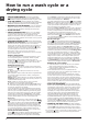How to run a wash cycle or a drying cycle GB 1. SWITCH THE MACHINE ON. Press the On/Off button ; the text POWER ON will appear on the display and the START/PAUSE indicator light will flash slowly in a green colour. 2. LOAD THE LAUNDRY. Open the porthole door. Load the laundry, making sure you do not exceed the maximum load value indicated in the table of programmes on the following page. 3. MEASURE OUT THE DETERGENT.