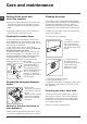 Care and maintenance GB Cutting off the water and electricity supplies Cleaning the pump • Turn off the water tap after every wash cycle. This will limit wear on the hydraulic system inside the washer-dryer and help to prevent leaks. The washer-dryer is fitted with a self-cleaning pump which does not require any maintenance. Sometimes, small items (such as coins or buttons) may fall into the pre-chamber which protects the pump, situated in its bottom part.