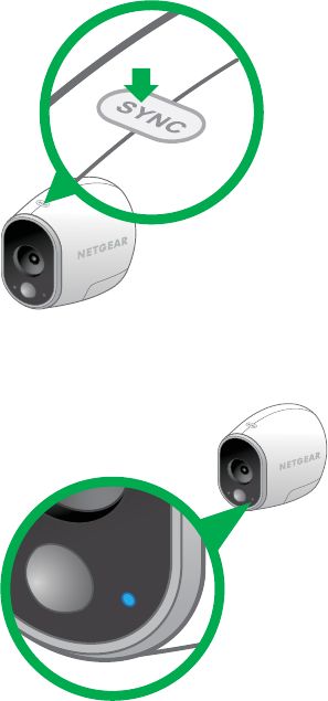 A blue LED on the camera blinks rapidly to confirm a successful sync.