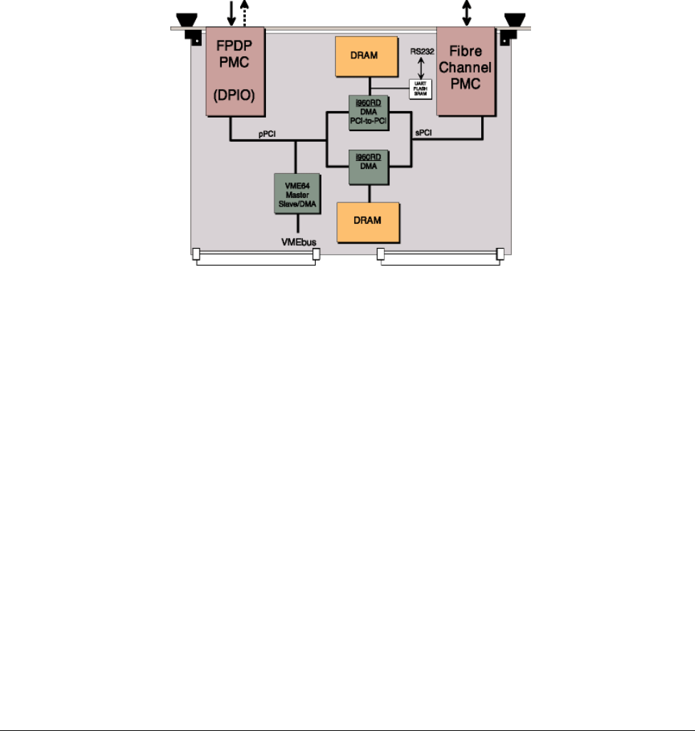 Two PMCs positions – one for FPDP (data source) and the other for the Fibre Channel