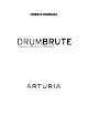 Thank you for purchasing the Arturia DrumBrute! This manual covers the features and operation of Arturia’s DrumBrute, a full-featured analog drum synthesizer, pattern sequencer and live performance device. In this package you will find: § One DrumBrute analog drum synthesizer, with a serial number and an unlock code on the bottom. You will need this information in order to register your DrumBrute online. § One DC power supply. Use only the included supply or else the unit could be damaged.