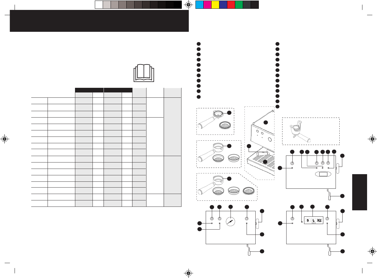PF = Portafiltro fixo. PM = Portafiltro móvel. TR = Tronic.