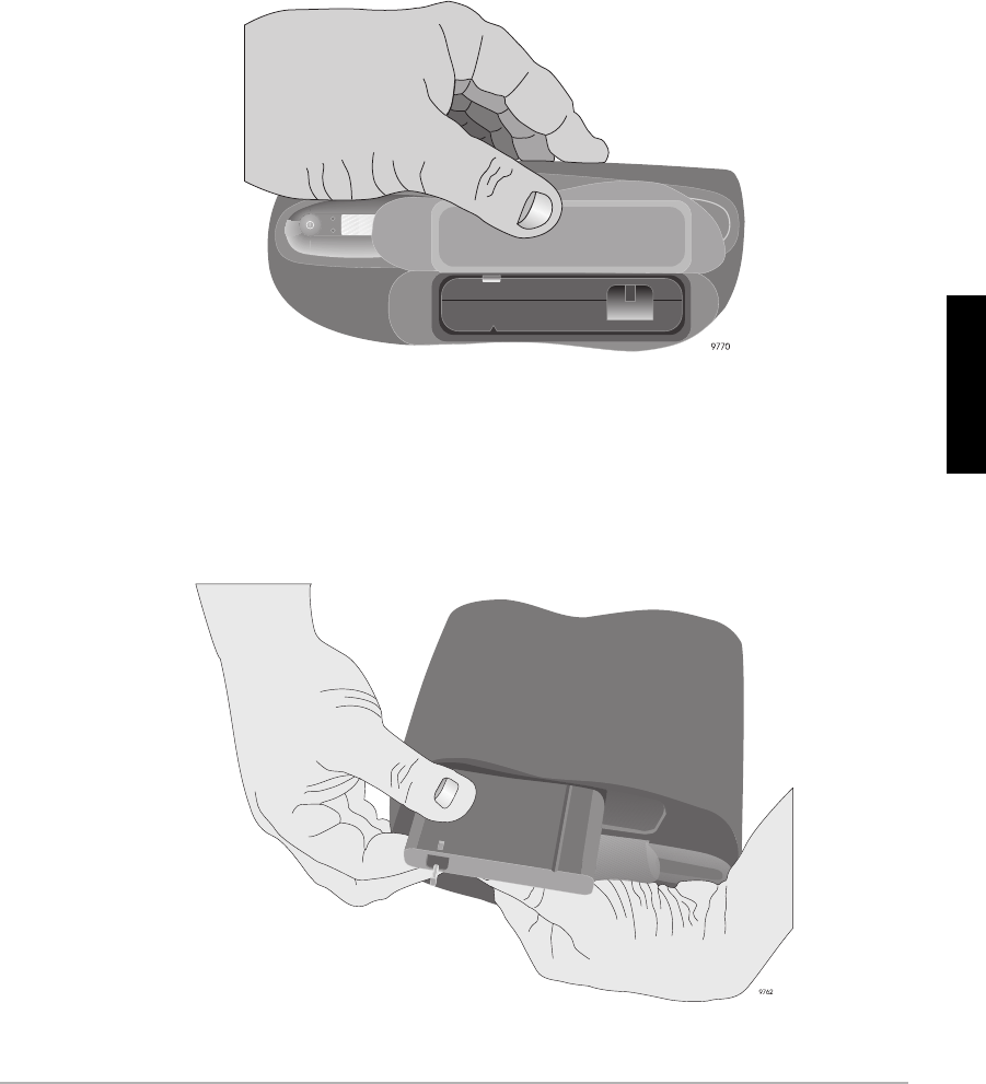 4. Grasp the battery by the sides with thumb and forefinger while holding