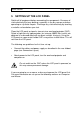 USER GUIDE 9 LCD PANEL MAINTENANCE From time to time, the housing and protection glasses may be cleaned with a damped, non abrasive cloth, possibly using a mild detergent to remove spots. The upper protection glass is not removable, as it only needs cleaning from the outside (the inside is sealed to the LCD module). The lower protection glass can be removed for cleaning. Place the unit upside-down on a soft cloth to avoid scratches.