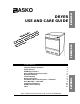 ASKO ASKO DRYER DRYER FEATURES FEATURES Below is an illustration of the parts and features of your ASKO dryer. Power Button Condensed Water Container (Models T720 & T780) Control Panel CARE LABEL INSTRUCTIONS INSTRUCTIONS Read all permanent care labels carefully. If the label says “Drip dry,” “Line dry” or Dry flat,” do not dry that item in the dryer. Certain fabrics will melt or become dangerously flammable if heated, while others may lose their shape.