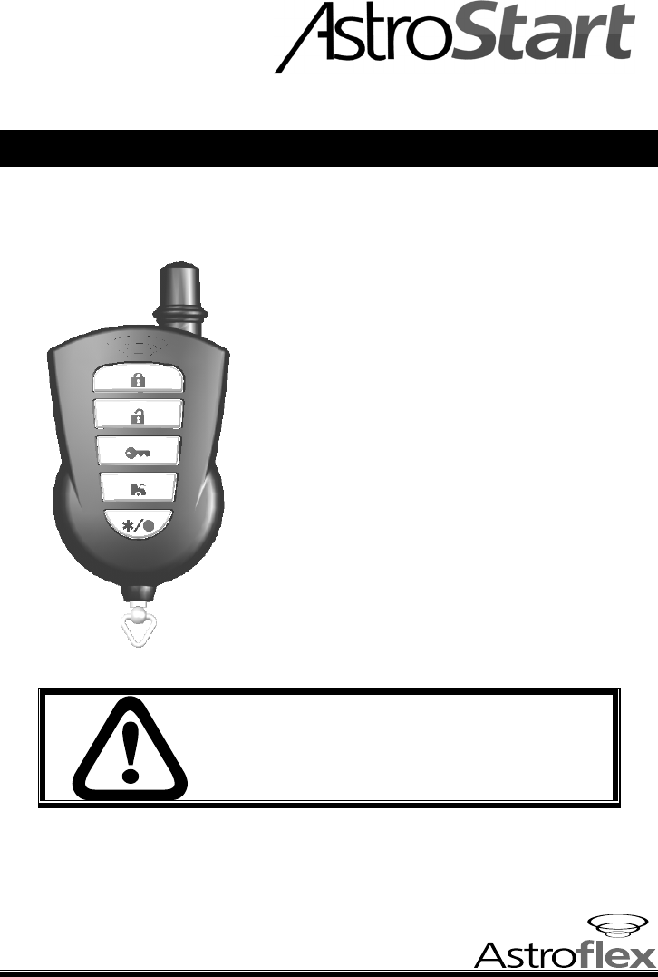 SAFETY PRECAUTIONS Before using this product, carefully read the following safety precautions. GENERAL RULES • Never perform a remote start when a person or animal is inside the vehicle. • Do not allow any person or animal to remain inside the vehicle when the engine is running under remote starter control (continuous mode). • Immediately report any malfunction to the AstroStart dealer that performed the installation. • Under no circumstance can this product or its use be modified.