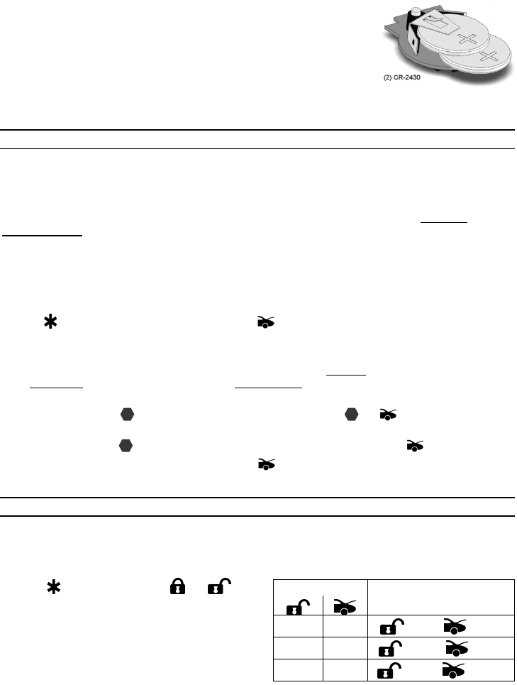 The remote control requires two 3-volt lithium batteries (CR-2430 or equivalent).