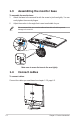 1.3 Assembling the monitor base To assemble the monitor base: 1. Attach the base to the arm and fix with the screw to join them tightly. You can easily tighten the screw by fingers. 2. Adjust the monitor to the angle that is most comfortable for you. We recommend that you cover the table surface with soft cloth to prevent damage to the monitor. 2 1 Make sure to screw the base to the arm tightly. 1.4 Connect cables To connect cables: Connect the cables you need based on chapter 1.5.2, page1-5.