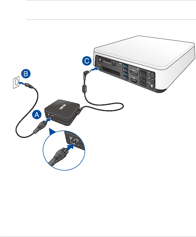 C. Steek de kabel van de netstroomadapter in de VivoMini.