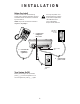 INSTALLATION Before You Install Choose a location for the answering system near a modular telephone jack and a standard electrical outlet not controlled by a wall switch. Use only the power cord supplied with this product. If you need a replacement, call 1 800 222–3111. Input: 120 V, 60 Hz. Output: 6V AC, 350 mA. NOTE: If you do not want to connect a telephone, skip Step 2. 1 2 Standard Electrical Outlet Connect the telephone line cord. Strain-relief tab Connect the telephone (optional).