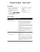 FEATURE SETUP Feature Setup 1 2 3 4 To enter Feature Setup mode, press and hold S until the system announces “Number of rings.” Press and release S until the system announces the feature you want to set. Press and release or until the system announces the setting you want. Refer to the Feature Summary for options. Press and release S to set up the next feature listed on the Feature Summary — OR — Press and release P to exit Feature Setup. The new settings will be saved.