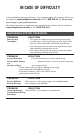 IN CASE OF DIFFICULTY ANSWERING SYSTEM OPERATION PROBLEM SOLUTION System Does Not • Make sure you are calling from a touch tone phone. Respond To Remote When you dial a number, you should hear tones. If you Commands hear clicks instead, the phone is not a touch tone telephone. • The answering system may not detect the Remote Access Code while your announcement is playing. Try waiting until the announcement is over before entering the code. • There may be noise interference on the phone line you are using.
