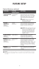 FEATURE SETUP Feature Summary continued FEATURE: SYSTEM ANNOUNCES: OPTIONS: ANNOUNCEMENT “ANNOUNCEMENT MONITOR MONITOR IS...” Choose ON to hear the announcement when your system answers a call. Choose OFF to have it silent on your end. (Your caller will still hear the announcement.) Volume must be set to a NOTE: level you can hear to use Announcement Monitor. NUMBER ANNOUNCE (Please see NOTE below.