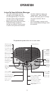OPERATION Listen To, Save & Delete Messages • • The system automatically saves your messages until you delete them. You can store approximately 19 minutes of messages, memos, and announcements (up to a maximum of 100 messages). Before playing each message, the system announces the day and time the message was received. If Store Number is set to on, the system also announces • the caller’s telephone number (see “Store Number” under FEATURE SETUP).