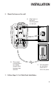 INSTALLATION Wall Installation 1 Position the wall mount adapter on the base. Align tabs on wall mount adapter with holes on bottom of base. Snap wall mount adapter firmly into place. 2 3 6 Connect the telephone line cord. Connect the power cord.