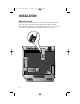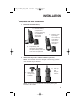 9370_to make pdf_1ATT 6/12/00 2:06 PM Page 5 INSTALLATION Table/Desk and Wall Installation 1 Install the handset battery. a) Remove battery compartment cover by pressing on indentation and sliding downward. c) Replace cover by sliding it on its track up over battery case until it snaps firmly into place. b) Plug battery pack connector into handset, and place battery pack and wires into compartment. 2 Attach belt clip to the cordless handset (optional).