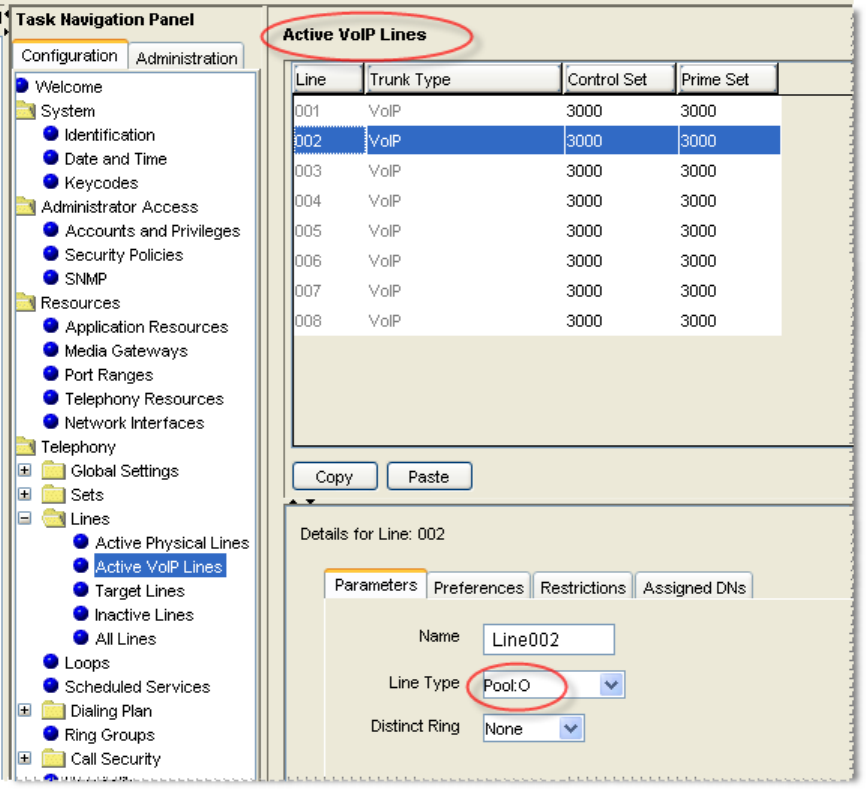 Configurations Æ Lines Æ Active VOIP Lines
