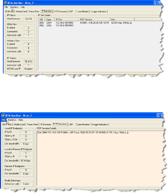 The end-to-end RTP sessions per IP call can also be displayed with the BCM