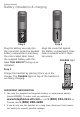 Getting started Battery installation & charging Install the battery as shown below. After installing the battery, you can make and receive short calls. Place the handset in the telephone base or charger when not in use. For optimal performance, charge the handset battery for at least 16 hours before use. See the table on page 31 for battery operating times. If the battery is depleted, it may take approximately 10 minutes to charge the handset before it shows LOW BATTERY.