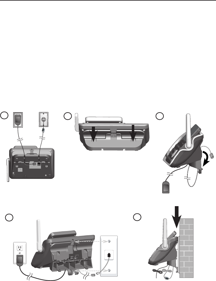 2. Press down on the tabs on the wall mount bracket on the telephone base