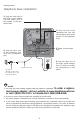 Getting started Installation options 3. To attach the bracket for wall mounting, insert and on the tabs of the bracket into slots the telephone base, then press the other bracket and as shown on the right. tabs into slots 4. Plug the power adapter into an electrical outlet not controlled by a wall switch. Plug the telephone line cord into a telephone wall jack. To mount the telephone on the wall, position the mounting holes and over the telephone outlet mounting studs.