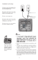 Installation and setup 1. Plug one end of the telephone line cord into the telephone jack at the bot tom of the telephone base. 5 4 2. Plug the small end of the power adapter into the power jack at the bottom of the telephone base. Telephone line cord 3. Route cords through slots. DSL filter (Optional for DSL users, see number four in the note section below.) 4. Plug the large end of the power adapter into an electrical outlet not controlled by a wall switch. 3 5.