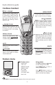 Quick reference guide Cordless handset CID/- VOLUME MENU/SELECT Press to scroll down while in menus. Press to display caller ID information. While entering names or numbers, press to move the cursor to the left. Press to decrease the listening volume while on a call. Press to display the menu. Once in the menu, press to select an item or save an entry or setting. DIR /VOLUME+ Press to scroll up while in menus. Press to display directory entries.