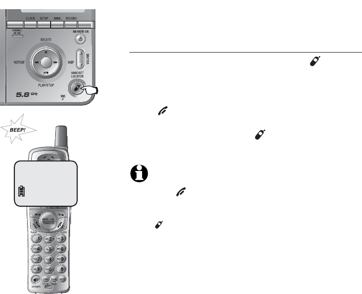 phone base, or press the HANDSET LOCATOR