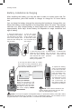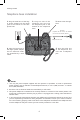 Getting started Telephone base installation 1. Plug the small end of the larg- er power adapter into the power jack at the bottom of the telephone base. 2. Plug one end of the telephone line cord into the telephone jack at the bottom of the telephone base. 3. Route cords through slots. DSL filter (Optional for DSL users, see number four in the note section, below.) Telephone line cord 4. Plug the large end of 5.