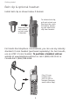 Getting started Belt clip & optional headset Install belt clip as shown below if desired. To release belt clip, pull and unlock one flap from the notch first before detaching the whole belt clip from handset. Snap belt clip into notches on both sides of handset. For hands-free telephone conversations, you can use any industry standard 2.5 mm headset (purchased separately). For best results, use an AT&T 2.5 mm headset. ��������������������������������� To purchase a headset, visit our website at www.