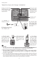 Getting started Telephone base and charger installation 1. Plug one end of the 2. Plug the small telephone line cord into the telephone jack at the bottom of the telephone base. end of the larger power adapter into the power jack at the bottom of the telephone base. 3. Route cords through slots. DSL filter (Optional for DSL users, see Note No. 4 below) 4. Plug the large Telephone line cord end of the larger power adapter into an electrical outlet not controlled by a wall switch. 5.