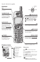 Quick reference guide Handset CENTER UP CID Press to display caller ID information. RIGHT LEFT DOWN PHONE/FLASH Press to make or answer a call. During a call, press to receive an incoming call if call waiting is activated. MENU/SELECT Press to display the menu. Once in a menu, press to select an item or save an entry or setting. Press or to scroll up or down while in menus. While entering names or numbers, press or to move the cursor. MUTE/DELETE While on a call, press to mute microphone.