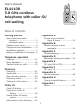 Appendix I Index A Alert tones, 33 Answer a call, 16 I Incoming caller ID history, 30 Indicator lights, 33 B Battery charging, 9 Battery installation, 9 Battery low, 10 M Make a call, 16 Missed calls, 29 Mute, 19 P Power adapter, 6 Predialing, 16 C Call waiting, 19 Caller ID, 27 add entries to phone directory, 32 delete entries, 31 dial entries, 30 Channel, 20 Q Quick reference guide, 2-3 R Recharging, 9 Redial, 17 Ringer silencing, 17 Ringer, 12 Ringer volume, 13 D Delete caller ID history entries,